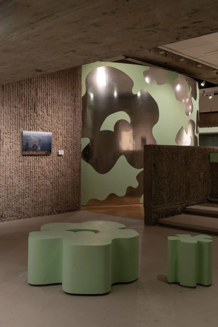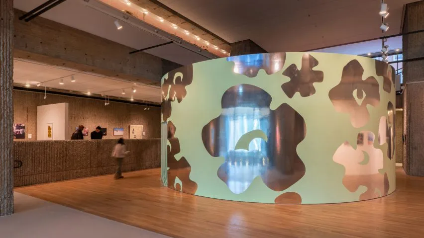 The centrepiece installation - a theatre draped in flowers - sits within the Paul Rudolph Hall building, creating a vivid contrast between organic softness and the raw, angular concrete that defines the space around it. It's the kind of curatorial move that makes you stop and actually look, which is very much the point.