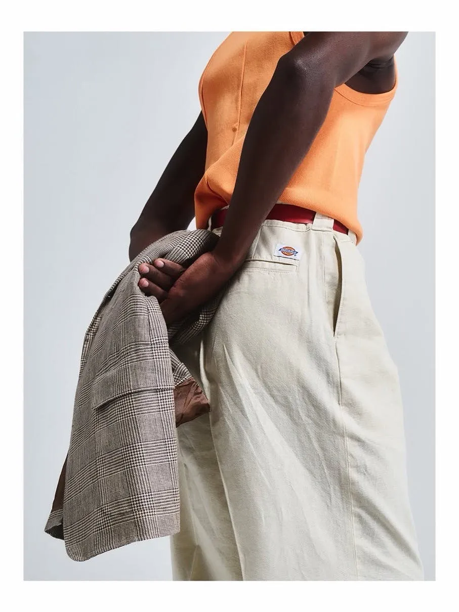 There are some pieces of clothing so deeply associated with one context that imagining them anywhere else feels almost radical. The Dickies work pant is one of them. Built for the job site, adopted by skaters, loved by anyone who appreciates a no-nonsense silhouette - it has always been about function first. But even a legend deserves a day off.