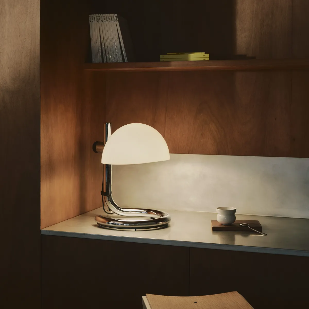 The Lauro collection is more than just a nostalgic callback to 1970s aesthetics - though it does nail that warm, sculptural vibe that decade did so well. What makes it genuinely interesting is the engineering story behind it. The collection is defined by its continuous steel stem and base, a single flowing form that was remarkably difficult to produce at the time of its original release. Bending steel in this way was considered a real manufacturing challenge in the early 1970s, which means the design was quietly ahead of its moment.