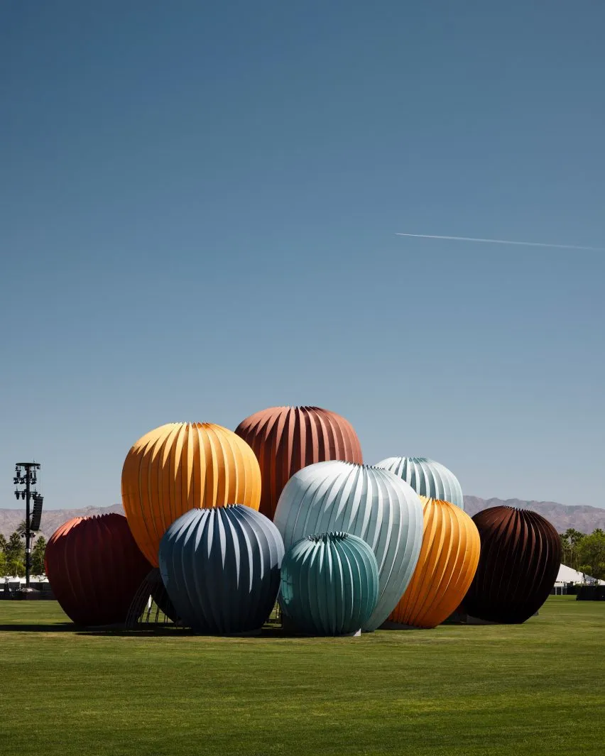 According to Dezeen, the three works are spread across the Coachella Valley Music and Arts Festival grounds in California, meaning festival-goers will encounter them woven into the flow of their weekend rather than tucked away in a dedicated art zone.