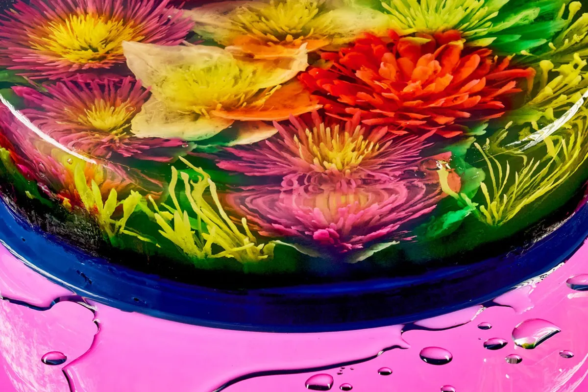 The format rewards creativity in a way that, say, a brownie simply doesn't. Light passes through jelly. Color layers and suspends within it. You can trap botanicals, fruits, or abstract shapes inside like a snow globe - or like a little preserved world unto itself.