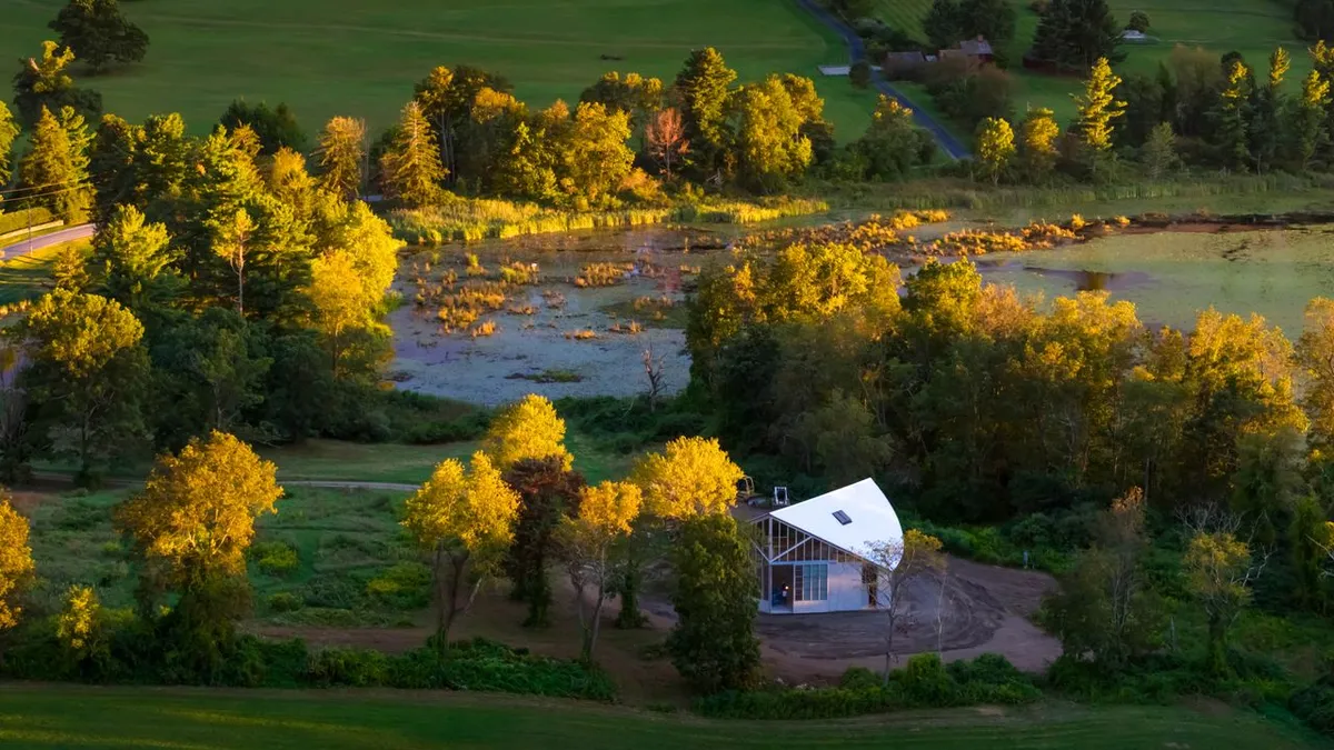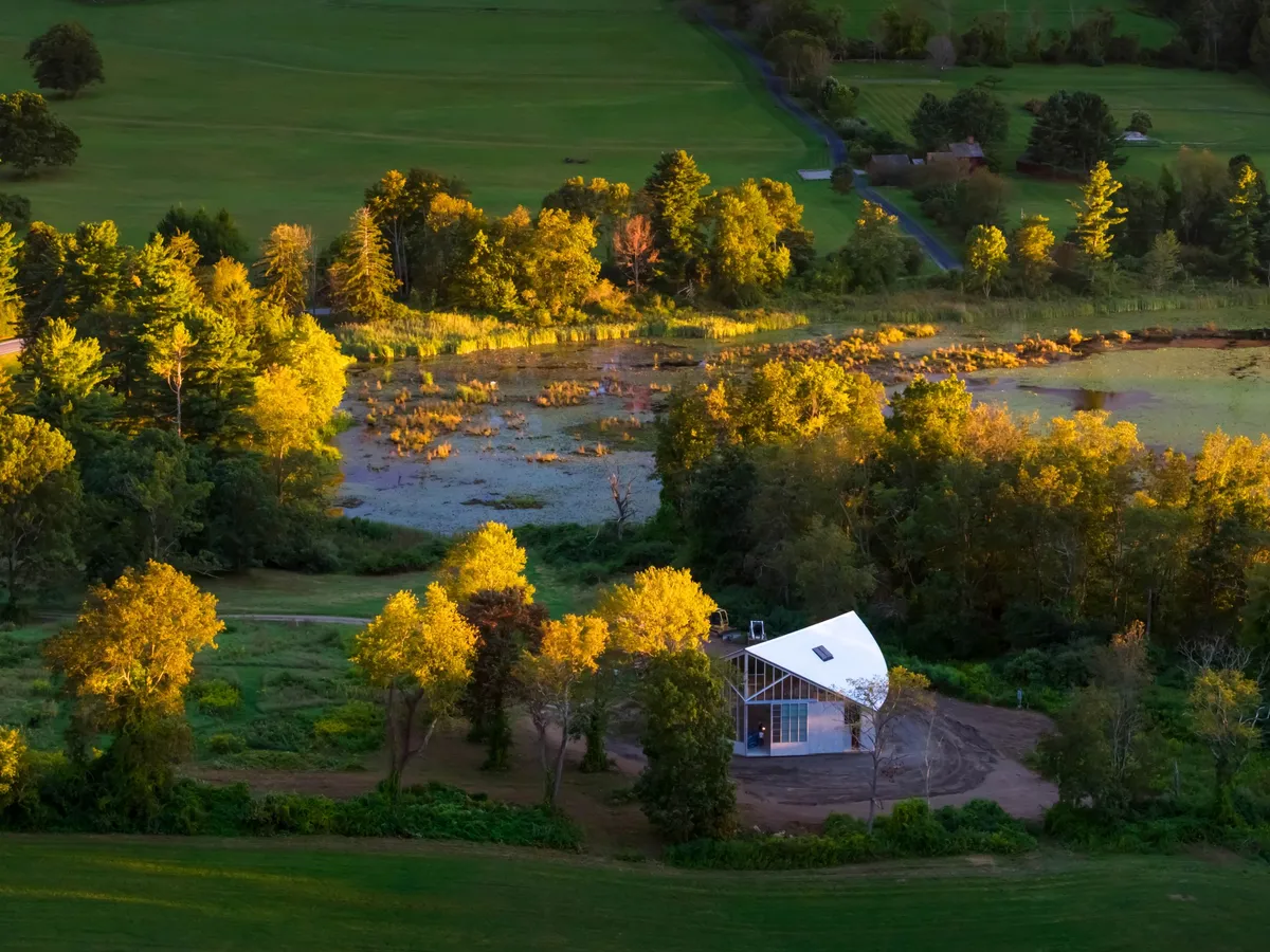 Lott drew heavily from the agrarian buildings that dot the Hudson Valley region when designing the space. That means honest materials, a strong silhouette, and a sense that the structure actually belongs to its surroundings rather than imposing on them. The result is a workspace that feels earned, not curated for the 'gram.