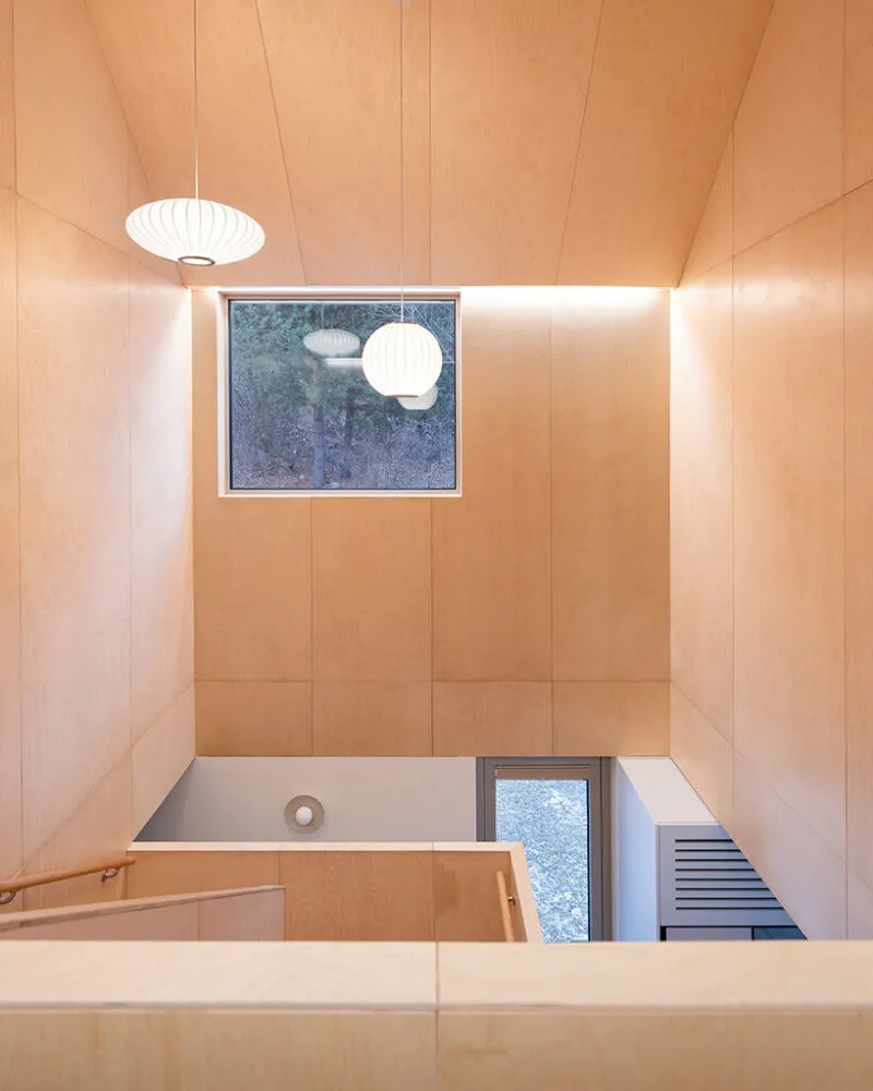 According to reporting by Designboom, the home overlooks a distant valley, which means the design isn't just about how it looks up close. The profile of those twin gables reads beautifully against the landscape, making the house feel like a considered part of its surroundings rather than an imposition on them.
