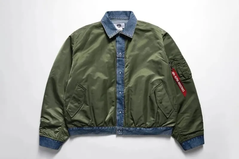 The Japanese label's latest collaboration with American military outerwear icon Alpha Industries takes the iconic MA-1 bomber and rebuilds it as a reversible hybrid - part flight jacket, part trucker, entirely worth talking about. According to Hypebeast, the piece fuses olive flight nylon on one side with washed denim on the other, giving you two very different silhouettes and moods from a single garment.
