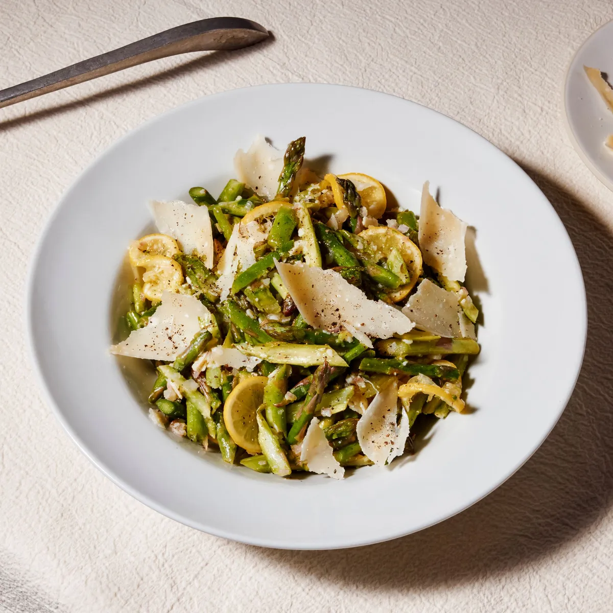 The lemony vinaigrette does the heavy lifting here, cutting through any grassiness in the asparagus and bringing a freshness that makes this feel like proper spring eating. It's the kind of dish that's light enough for a starter but interesting enough to be the thing people ask about at the table.